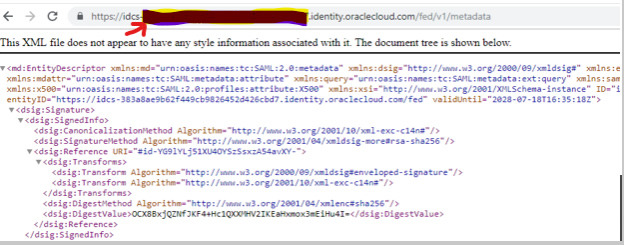 https://idcs-xxxxxx.identity.oraclecloud.com/fed/v1/metadata