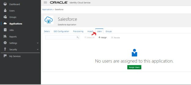 17. Click on the Application select the Salesforce app and click on the users tab.