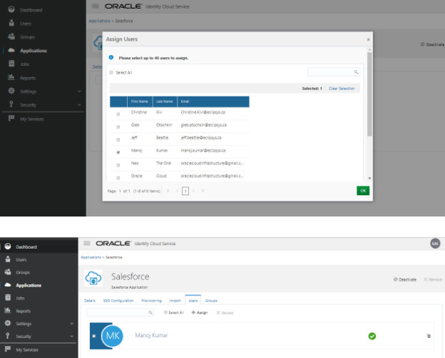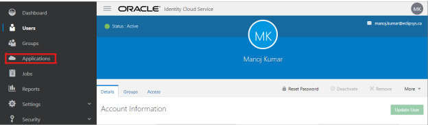 8. Now go to Oracle Cloud IDCS admin console -> Applications menu