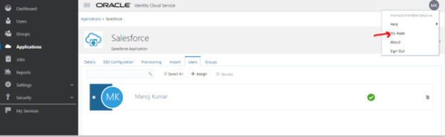 Congratulations, We completed the SSO for a Salesforce app from Oracle Cloud.