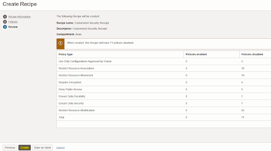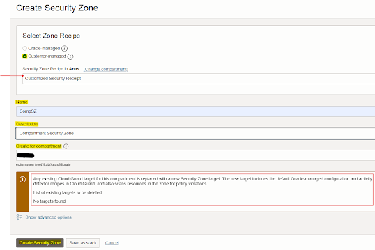 3. On the Create Security Zone page, select "Customer-managed" and select the recipe which was created in task #1,