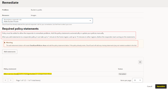 - Policy must be added to allow the responder to remediate problems. Add the policy statements automatically or update your policies manually.