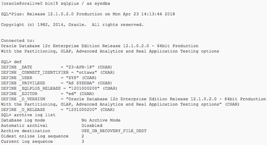 In this case the “ottawa” database is in noarchivelog mode, so we need to do the following to switch to archivelog mode.