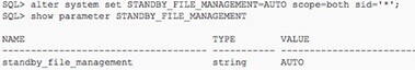 SQL> alter system set STANDBY_FILE_MANAGEMENT=AUTO scope=both sid='*';