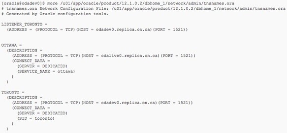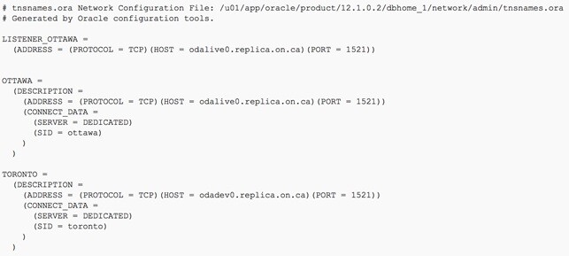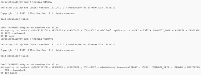 The primary database “ottawa” is located on “ODALIVE0” (which is the primary node “Node 1” of the ODALIVE ODA) and the physical standby will eventually be named “toronto” and will be located on “ODADEV0” (which is the primary node “Node 1” of the ODADEV ODA)