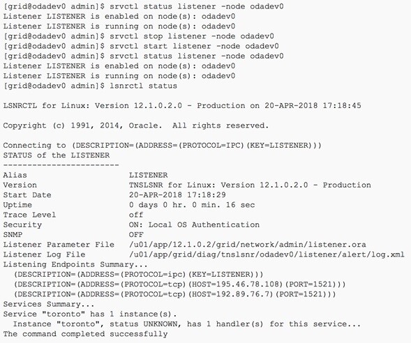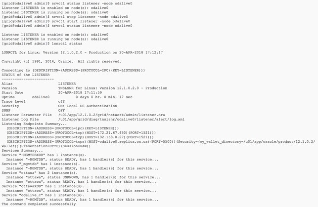 15. Restart listener on ODADEV0 as “grid” user for changes to take effect.