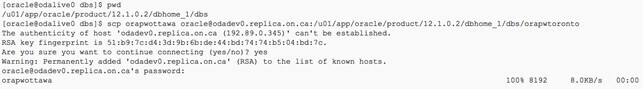12. Copy the “ottawa” DB password file from ODALIVE0 to ODADEV0