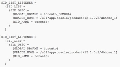 14. Set up the listener.ora files for “ottawa” DB to include entries for the Dataguard broker.