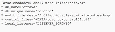 17. Creation of pfile on ODADEV0 for “toronto” DB with the following contents.