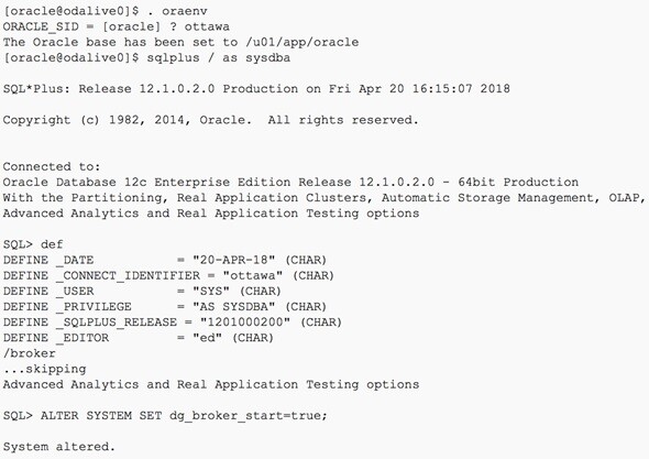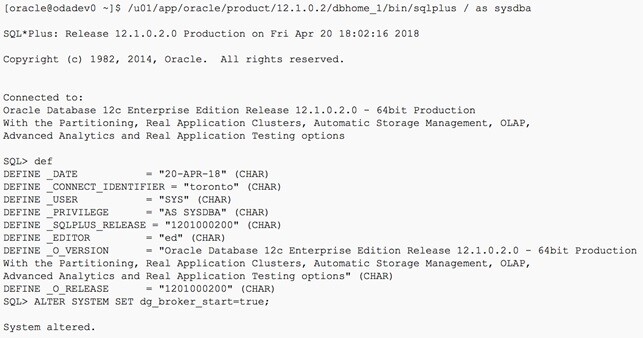 SQL> ALTER SYSTEM SET dg_broker_start=true;