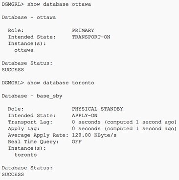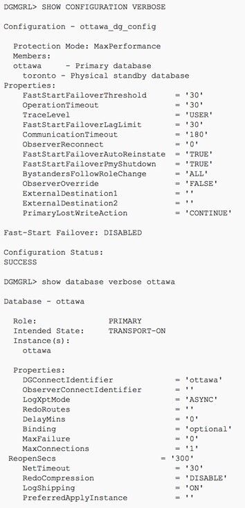 DGMGRL> SHOW DATABASE VERBOSE ‘ottawa’;