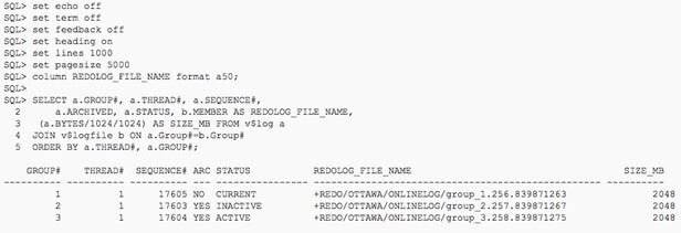SELECT a.GROUP#, a.THREAD#, a.SEQUENCE#,