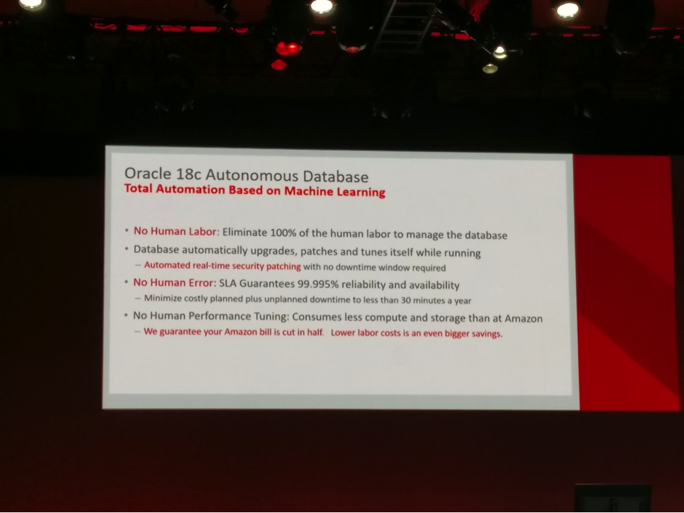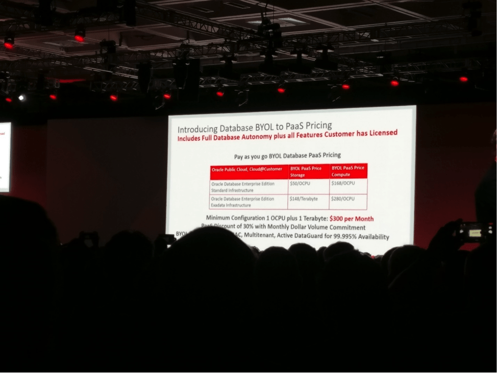 Larry Ellison’s Sunday Night Keynote is the one you don’t want to miss because Larry will deliver the major announcements and set the tone for the rest of the week. The two topics that I was the most interested in were the Autonomous Database and the BYOL Database PaaS Pricing.