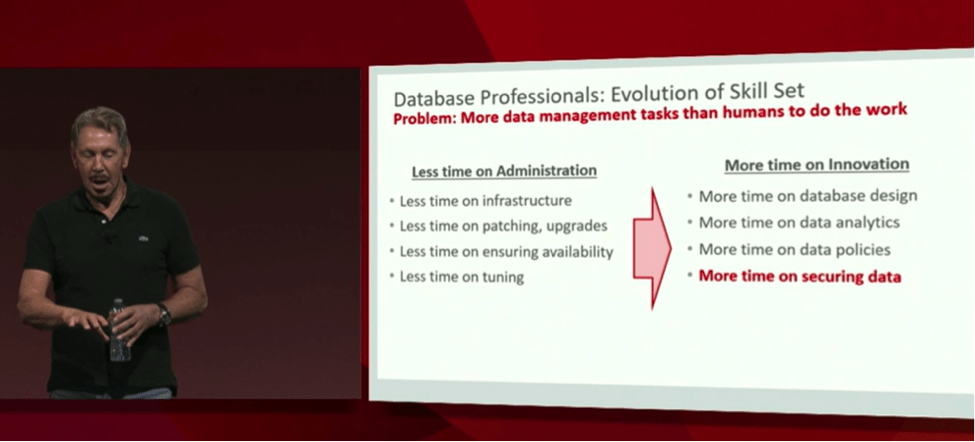 So, what does this mean for the DBA role? Larry Ellison talked about the evolution of the skillset, where the DBA would spend less time on infrastructure tasks and more on applicative tasks such as database design and security. This is not far fetched as I have seen many enterprises that already split the DBA role between infrastructure or system DBA and application DBA. Moreover, we’ve already seen the DBA role evolve in the past years with the engineered systems (such as ODA and Exadata) to that of Database Machine Administrator (DMA). Again, we are asking the DBA to be a highly flexible IT professional.