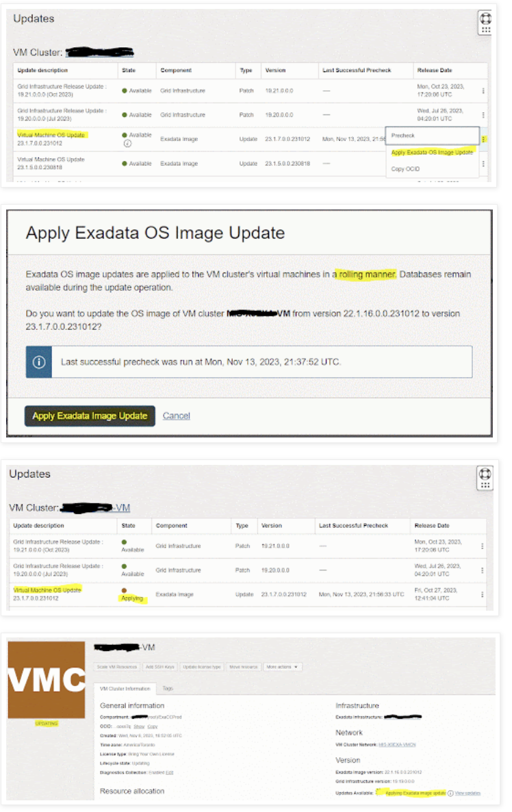 In this blog, I’ll demonstrate the steps to patch/update the ExaCC VM cluster OS image to the latest available release update using the OCI console.