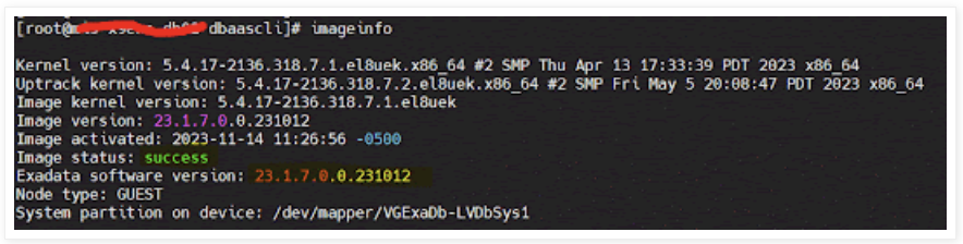 7. Confirm the Exadata image version by running “imageinfo” command on VM Cluster nodes.