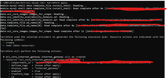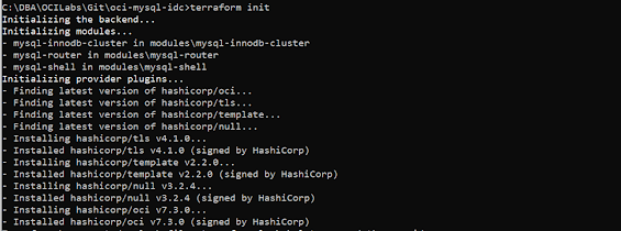 - Initialize the environment with the command below from the oci-mysql-idc directory.
