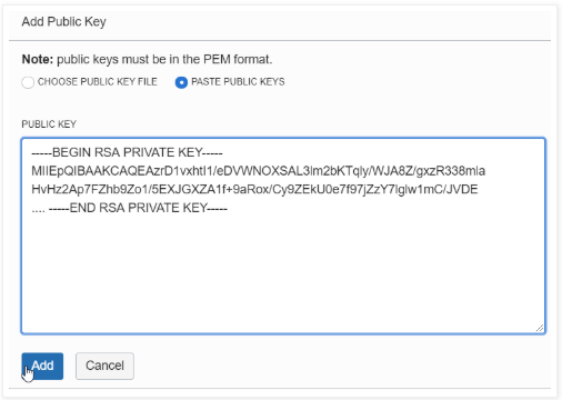 Sign in in to the Cloud Console and Go to Menu -> Identity -> Users -> API Keys -> Add Public Key