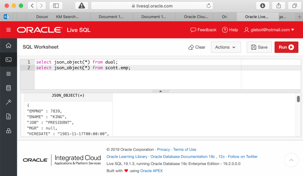 Today is the middle of January of 2019. We all know the Oracle naming for new versions of software reflects the year when it is issued. And today in the very first month of the new 2019 year we already can try shiny, new Oracle Database 19c. You have already guessed how you can do it. You go to the livesql.oracle.com, open the SQL worksheet and run: