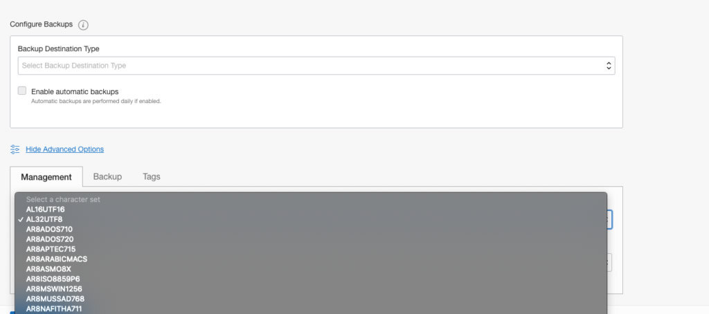In May the improvements continued and we got some changes in the interface and functionality. One of the major changes was the option to choose a character set for your container database. In some cases, it is extremely important for earlier than 12.2 database releases. If you have 11gr2 or 12cr1 databases to migrate you have to be able to choose it. The option was theoretically available even before using “dbaasapi” tool but it didn’t work perfectly well for me. After adding support for the console it was working fine from both interfaces whether it was Web GUI or “dbaasapi” tool.