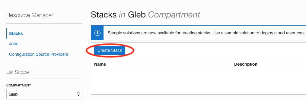 Now I am going to the Resource manager page and push the button “Create Stack”.