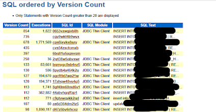 SELECT version_count, sql_id, sql_text FROM v$sqlarea WHERE version_count > 512;