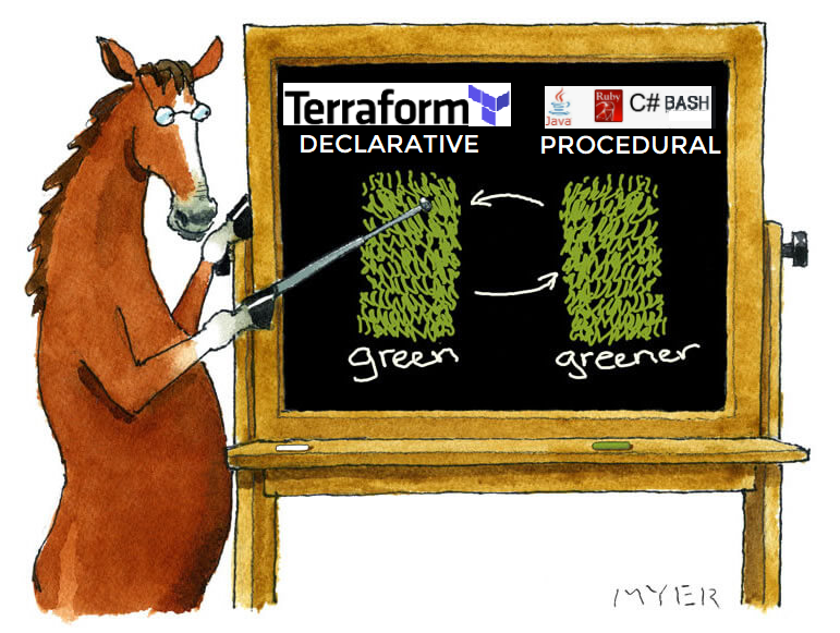 My impression after enjoying my first terraform applys is that it’s kind of rigid, though when someone says Immutable and declarative in the same sentence, you should definitely get that it’s not procedural by design. Therefore, you can’t expect a bash shell script programmability. That’s the tricky part for me because I always start playing with the Cloud vendor’s CLI before switching to its Terraform provider… It’s like having a BBQ party on Sunday then turn vegan on Monday :D!! You just wish they could allow a tiny more.